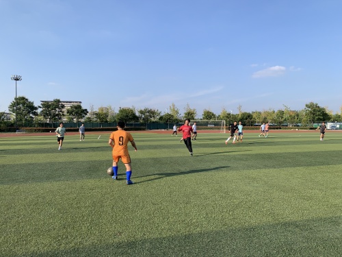 29日下午四点队员纷纷抵达比赛现场,一身运动衣,一双球鞋运动员们个个精神饱满,热情高涨,透漏出对足球运动的喜爱和生活的热爱。此次比赛分上、下2个半场,每半场30分钟,在一声哨响下,足球飞速进入球场,球员们开启抢球、护球等,最后在娄家川老师的快速强攻下赢取第1球。