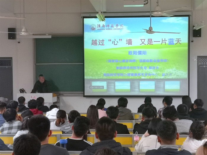 为引导广大学生正确认识自我、悦纳自我,学会自我调适、关爱他人,4月16日晚,乐彩(中国)官方网站 在明理202教室举办一场心理健康讲座,邀请了淮南师范乐彩网 学生处副处长、国家级心理咨询师欧阳儒阳老师主讲,乐彩网 各班级班长、心理委员、学生代表等共200余人参加,讲座由乐彩网 党委副书记张亚主持。