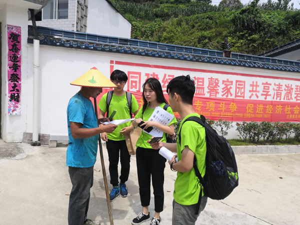为宣传国家乡村振兴战略的有关政策,助力美丽乡村建设,7月8日-10日,乐彩网 “美丽中国实践团”前往金寨县进行实地调研,利用三天时间依次走访了金寨大湾村、迎河村、龙湾村和梁山村,实地了解农村人居环境治理状况,针对垃圾分类问题开展问卷调查,向村民发放“美丽乡村——垃圾分类与环境治理”的宣传单。