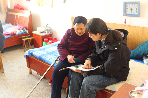 来到这个三层建筑的老年公寓之后,志愿者们有序地展开关爱活动。入住老年公寓的老人们大都精神矍铄,也有少数老人神志不清、生活无法自理。志愿者们分工协作,积极主动打扫院落、帮助老人修理时钟,照顾行动不便的老人在宽敞的走廊散心,将带去的奶粉、面包分发给老人们,与老人们交流谈心倾听他们讲述自己的人生故事和感悟,和老奶奶一起翻开满载回忆的相册走进她们的美好记忆。