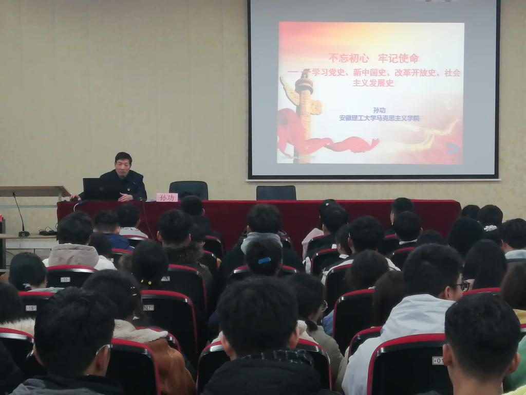 开班仪式结束后,马克思主义乐彩网 党总支书记、院长孙功教授为学员讲授《不忘初心牢记使命——学习党史、新中国史、改革开放史、社会主义发展史》专题内容。他从学习“四史”的重要性,“四史”的基本脉络、内在逻辑及根本经验四大方面,给学员们呈现一堂生动的团课,引导学员们立足当下,回望历史,汲取奋进力量。
