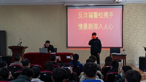 为进一步强化同学们的安全防范意识、增强同学们识别电信网络诈骗的能力,保护同学们的财产安全。11月11日,电信乐彩网 携手山南新区公安分局在励行楼B112采用“体验+情景剧”的形式进行反诈宣传。山南新区公安分局王远警官、张祝衡警官、乐彩网 学生工作负责人、全体辅导员和学生代表等参加了活动。