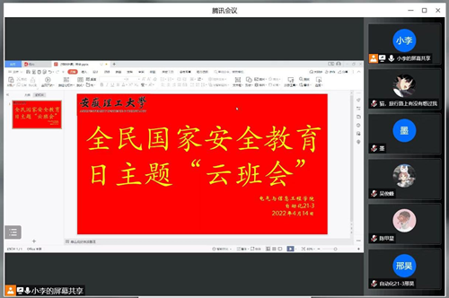 开展一次主题班会4月11日至14日,电信乐彩网 各团支部积极召开了全民国家安全教育日主题“云班会”。云班会上,各团支部学生深入学习以习近平同志为核心的党中央关于总体国家安全观、国家安全工作的重大部署和要求,以及《国家安全法》《反间谍法》等国家安全法律和重要政策文件,探讨作为当代大学生,如何践行总体国家安全观,自觉履行维护国家安全的义务。