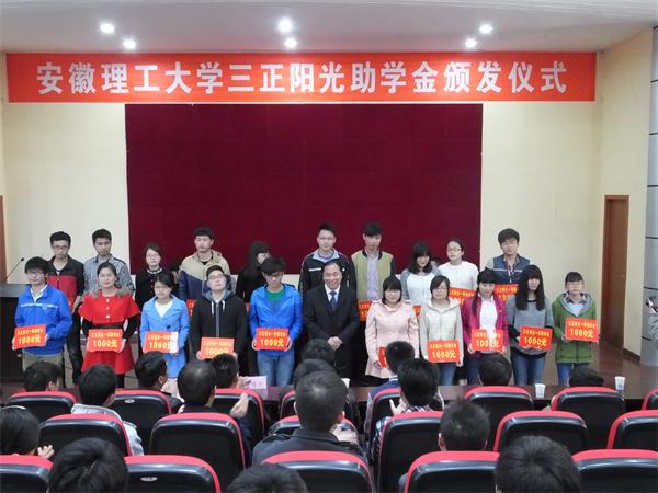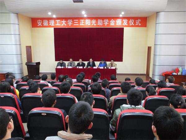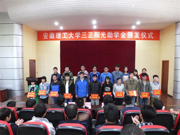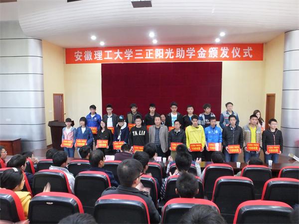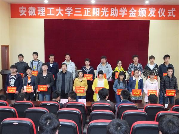 三正阳光助学金是由安徽省高新技术企业三正集团股份有限公司出资,于2012年开始在我校设立的,用于资助我校机械工程乐彩网 和乐彩(中国)官方网站 学习成绩优良、家庭经济困难的学生,今年是第三次颁发。