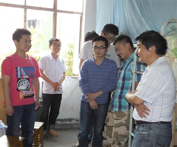 领导和辅导员深入学生宿舍 (摄影:赵埕萱)