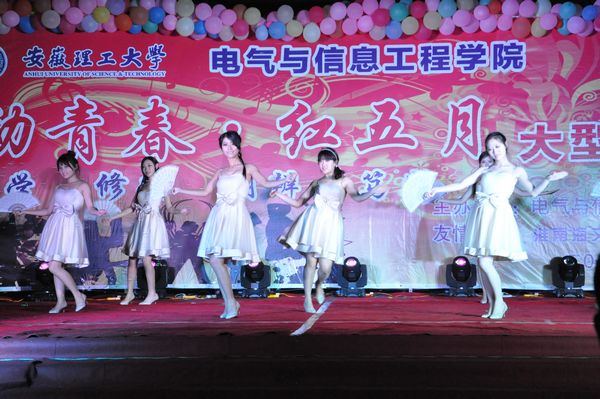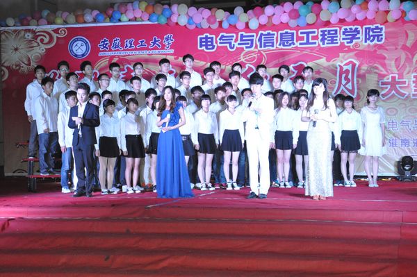 “悦动青春—红五月”大型文艺晚会在北校区实验楼前广场上隆重举行。校学生处副处长涂有胜、校团委副书记彭晶,电信乐彩网