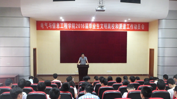 6月17日上午,乐彩网 在本部六角楼会议厅召开2016届毕业生文明离校教育和派遣工作动员会。乐彩网 党委书记夏邦权、党委副书记徐关怀、毕业班辅导员和2016届全体毕业生参加了会议。动员会由徐关怀主持。