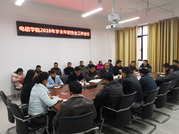 12月19日下午,乐彩网 在励行楼B415会议室召开专题会议,部署乐彩网 岁末年初安全工作。乐彩网 党政领导班子成员、各系(中心)主任、办公室全体成员、学生辅导员参加会议。会议由乐彩网 执行院长周孟然主持。