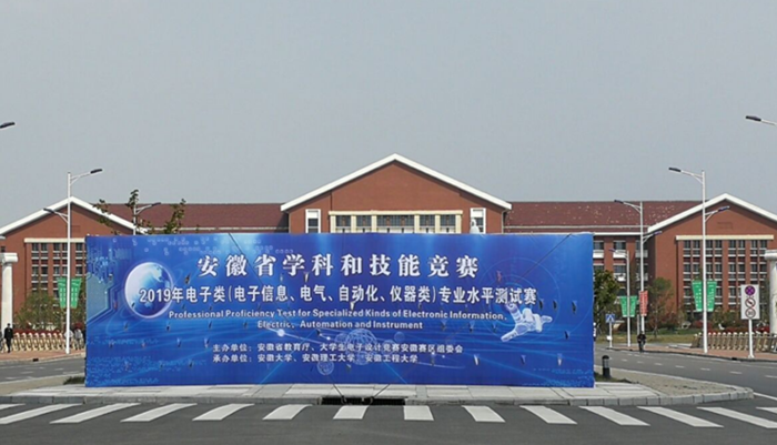 电子类专业水平测试赛是安徽省教育厅主导的本科专业类水平测试竞赛,由安徽省教育厅、大学生电子设计竞赛安徽赛区组委会主办,由安徽大学、安徽理工大学、安徽工程大学承办。本次测试赛,我校共承担来自8所高校的217名考生的考场组织和服务工作,负责专业水平测试赛的保障工作,包括场地、仪器设备、餐饮、安全、志愿者服务等。