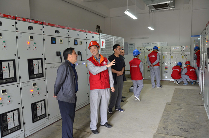 服务队成员检查我校电气设备(照片由淮南供电公司提供)