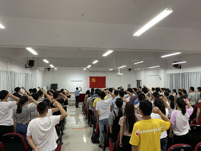 6月5日下午,乐彩网 在励行楼B112报告厅举办毕业生党员重温入党誓词活动。乐彩网 党委书记夏邦权参加活动并为毕业生党员讲党课。