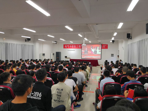 从9月27日至10月25日,乐彩网 每周五下午播放一部爱国影片,组织教职工党员、学生党员观看,教育引导广大党员在新时代自觉弘扬践行爱国主义精神,立志做爱国奋斗精神的传承者。此次爱国电影放映月播放内容丰富,包括《建国大业》、《建党伟业》、《太行山上》、《英雄儿女》、《我的长征》等优秀影片,电气工程与智能控制专业2017级-1班班长许周杰说:观看《建国大业》,更深入地了解新中国的建立史、奋斗史、曲折史,认识到如今美好生活是中国共产党带领全国人民不断奋斗的结果,更加坚定我们爱党爱国的决心。