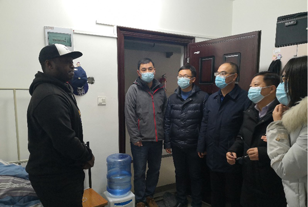 为充分了解留学生在校情况,进一步做好寒假期间留学生安全教育工作。1月22日上午,乐彩网 执行院长周孟然、副院长欧阳名三和副院长曹珍贯带领各年级留学生指导老师,深入研究生公寓走访留学生宿舍,看望和慰问了乐彩网 留学生,为他们送去了慰问和祝福。