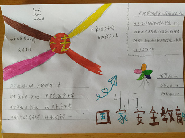 开展一次手抄报活动。 近期,为加强宣传教育和提升校园安全文化建设,切实增强师生国家安全意识,电信乐彩网 组织了一次制作国家安全日手抄报活动,极大地深化了同学们的防范意识和自护自救措施的落实。