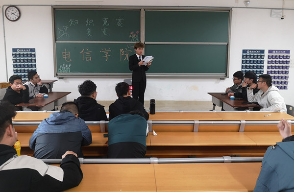 开展一次知识竞赛活动。 4月11日-14日,电信乐彩网 开展了“国家安全教育日主题”知识竞赛活动。活动分为两大阶段,第一阶段为笔试环节,各位选手深思熟虑,认真答题。第二阶段就是抢答题环节,现场如火如荼,选手们都积极地抢答。竞赛活动结束了,但是安全防范意识确需要警钟长鸣,希望通过知识竞赛的形式,可以加深同学们对安全知识的了解,增强理论知识运用于实际生活的能力,此次活动,激发同学们的安全意识,提高了自我保护能力。