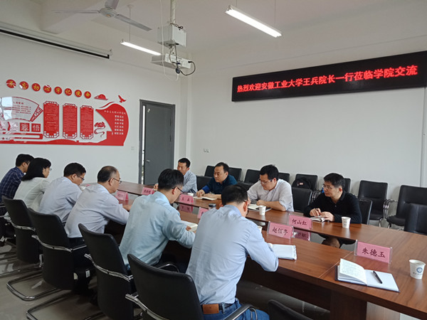 5月13日中午,安徽工业大学乐彩(中国)官方网站 院长王兵一行4人来乐彩网 交流学科与专业建设工作,乐彩网 执行院长周孟然在励行楼B415会议室接待了王兵一行,乐彩网 业务副院长欧阳名三、曹珍贯及相关专业系主任参加了交流会。