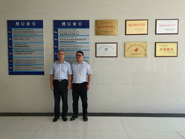9月3日上午,乐彩网 执行院长周孟然带队赴合肥国家级示范生产力促进中心、安徽省中小微企业基地同合肥祥通电气科技有限公司开展研究生联合培养合作洽谈,受到了公司总经理、乐彩网 2008级控制科学与工程硕士研究生吴宏伟的热情接待。