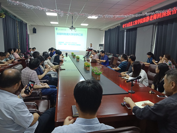 6月30日下午,乐彩网 在励行楼B407+学术报告厅举行赴英国访学教师回国学术报告会,自动化系教师陈静副教授汇报了他在英国利物浦大学一年的访学经历。乐彩网 党委书记夏邦权出席了汇报会,汇报会由乐彩网 业务副院长欧阳名三主持,乐彩网 各系、实验中心教师50余人参加了汇报会。