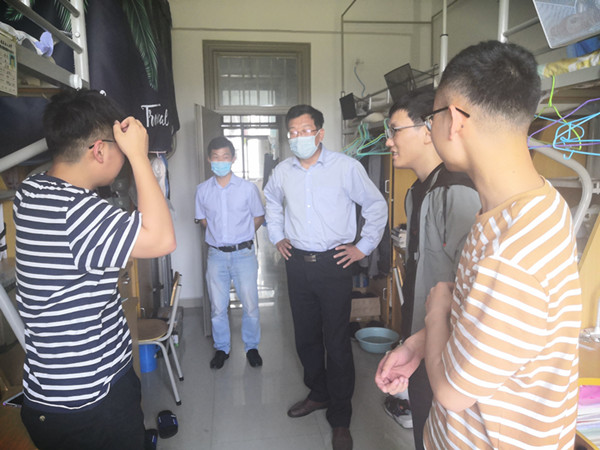 5月19日下午,乐彩网 党委书记夏邦权、党委副书记徐泽绵带领毕业班辅导员,深入学生宿舍,看望慰问返校学生。