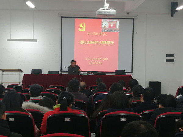 1月2日,乐彩网 在励行楼B112会议室举办党的十九届四中全会精神宣讲会。乐彩网 党委书记夏邦权主持会议并进行宣讲。