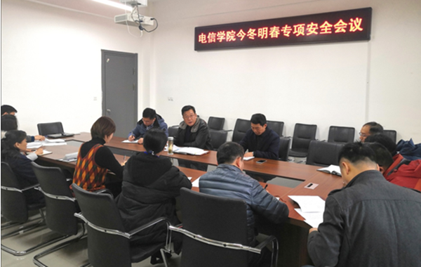 12月18日上午,乐彩网 在B415会议室召开了“电信乐彩网 今冬明春专项安全会议”,会议由乐彩网 党委书记夏邦权主持,乐彩网 领导班子及各系主任、中心实验室主任、院办工作人员、辅导员等二十多人参加了会议。