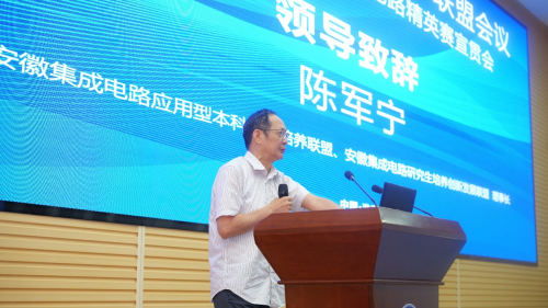 联盟理事长陈军宁在致辞中介绍了本次活动的由来,对参加此次联盟会的高校老师及重点企业表示由衷感谢,强调联盟及安徽省第四届集成电路精英赛的重要意义,并对安徽省第四届集成电路EDA精英赛的赛事情况进行说明。