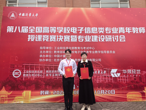 10月18日至20日,第八届全国高等学校电子信息类专业青年教师授课竞赛决赛暨专业建设研讨会在中国计量大学举办,乐彩(中国)官方网站 党委书记徐关怀、副院长曹珍贯带队参加。共有来自浙江大学、哈尔滨工业大学、武汉大学、国防科技大学、西安电子科技大学等院校的132名选手进入决赛,经过激烈角逐,我校乐彩(中国)官方网站 教师甘福宝荣获本次赛事全国一等奖、教郝娟荣获本次赛事全国二等奖,为我校在该项赛事中取得的历史最佳成绩。