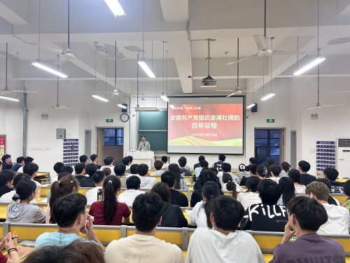 5月19日,安徽省“红色传承”铸魂育人辅导员名师工作室组织学生在明理203教室学习安徽百年党史,马克思主义乐彩网 孔海棠老师应邀主讲。乐彩网 140余名入党积极分子现场聆听,共同追溯安徽党组织的百年奋斗历程,汲取红色力量,坚定理想信念。