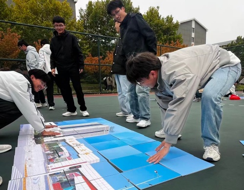工作室为2025级新生班级准备了明理门、天工门、百川门、至善门、红楼、明理楼、百川楼、图书馆等20套标志性建筑及校内网红打卡点的拼图套装。活动开始前,各班级辅导员助理引导同学们通过安徽理工大学校园地图服务系统“云游”学校的整体面貌。活动中,每个班级分成若干小组,每个小组派代表随机抽取拼图套装,同学们根据散装拼图模块竞猜建筑名称、学习建筑背后的校史故事;一块拼图犹如一把钥匙,带领大家解锁安理建筑的独特魅力,同学们在拼接的过程中不仅熟悉了校园环境、学习了校史,也对“团结、奋进、博学、奉献”的校训有了更加深入地理解,更在分工协作中强化了沟通与默契。