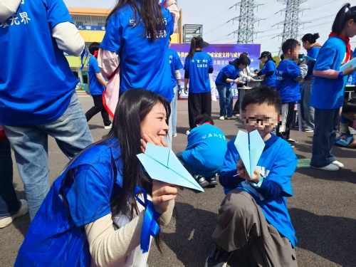 活动现场,志愿者有条不紊引导人员签到入场,为大家分发蓝丝带与蓝T恤,一抹澄澈的蓝色,成为现场传递关爱的温暖符号。志愿者们认真参观孤独症儿童画展,细细品读孩子们用画笔勾勒出的独特内心世界;迷你马拉松活动中,大家牵着孩子们的手,围绕操场并肩向前奔跑,在阵阵欢快的笑声里,悄然拉近了彼此心与心的距离;有奖问答环节,现场人员积极抢答孤独症相关知识,在轻松的趣味互动中,进一步加深了对孤独症群体的了解与认知。活动尾声,全体人员共同庄严宣誓,发出关爱孤独症儿童的爱心倡议,一同将蓝色纸飞机奋力放飞,让满载的美好祝福,与全社会对孤独症群体包容接纳的真挚期许,一同飞向蓝天。