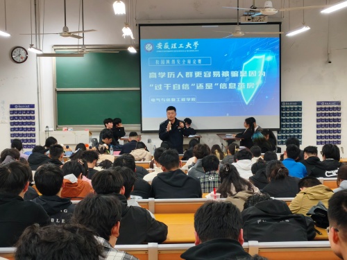 为切实增强学生防范电信网络诈骗意识,3月30日晚,乐彩(中国)官方网站 联合春晓街派出所举办反电信网络诈骗主题辩论赛。淮南市高新分局刑侦大队大队长李乾坤、乐彩网 包保民警王远、乐彩网 分管学生工作负责人及200名学生参加活动,现场气氛热烈。